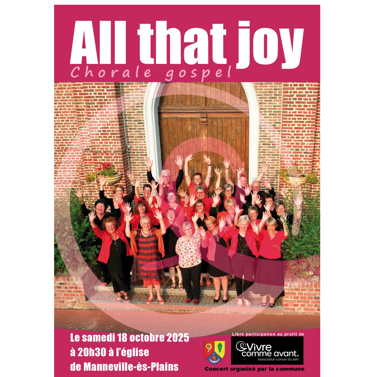 Dans le cadre des manifestations pour Octobre Rose au profit de la Ligue contre la cancer, nous somme très heureux d'accueillir le groupe de la chorale "All That Joy" dans notre église le samedi 18 octobre à 20h30. Entrée libre, participation libre "au chapeau".